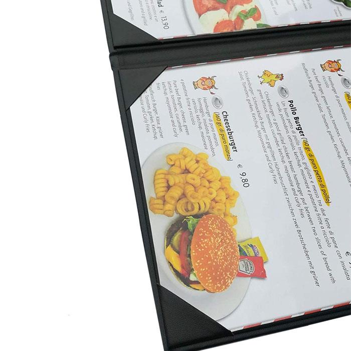 ソフトタッチA4レザーメニューフォルダは、スエード、スムースレザー、またはその両方の組み合わせを含む様々な高品質で活気のある素材を柔軟に選択できます。 そのプロフェッショナルでモダンなルック・アンド・フィールのおかげで、ディスプレイブックは、ホテル、レストラン、またはコーヒーショップで使用することができます。 クリスタルでクリアなポケットは、プロフェッショナルなエッジを維持しながら、すべての文書を完璧な状態に保ちます。
